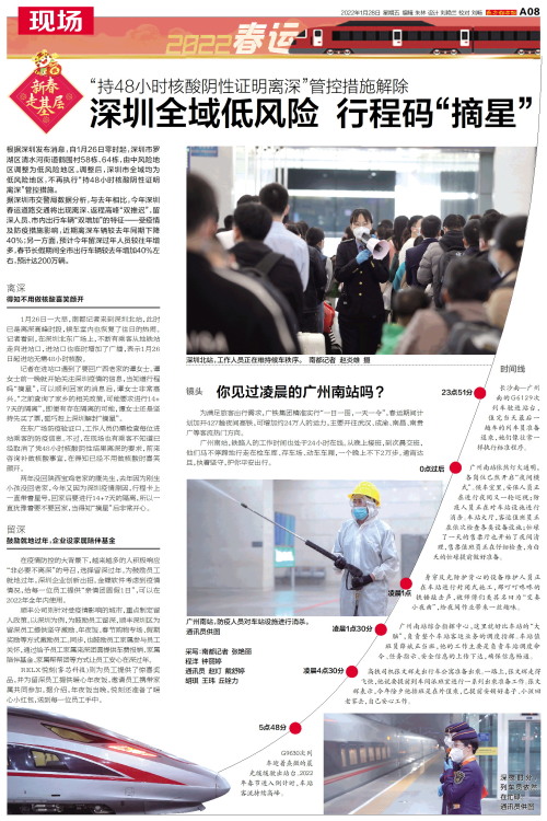 根据深圳发布消息,自1月26日零时起,深圳市罗湖区清水河街道鹤围村58栋、64栋,由中风险地区调整为低风险地区。调整后,深圳市全域均为低风险地区,不再执行“持48小时核酸阴性证明离深”管控措施。