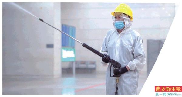 广州南站,防疫人员对车站设施进行消杀。通讯员供图
