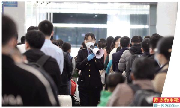 深圳北站,工作人员正在维持候车秩序。 南都记者 赵炎雄 摄