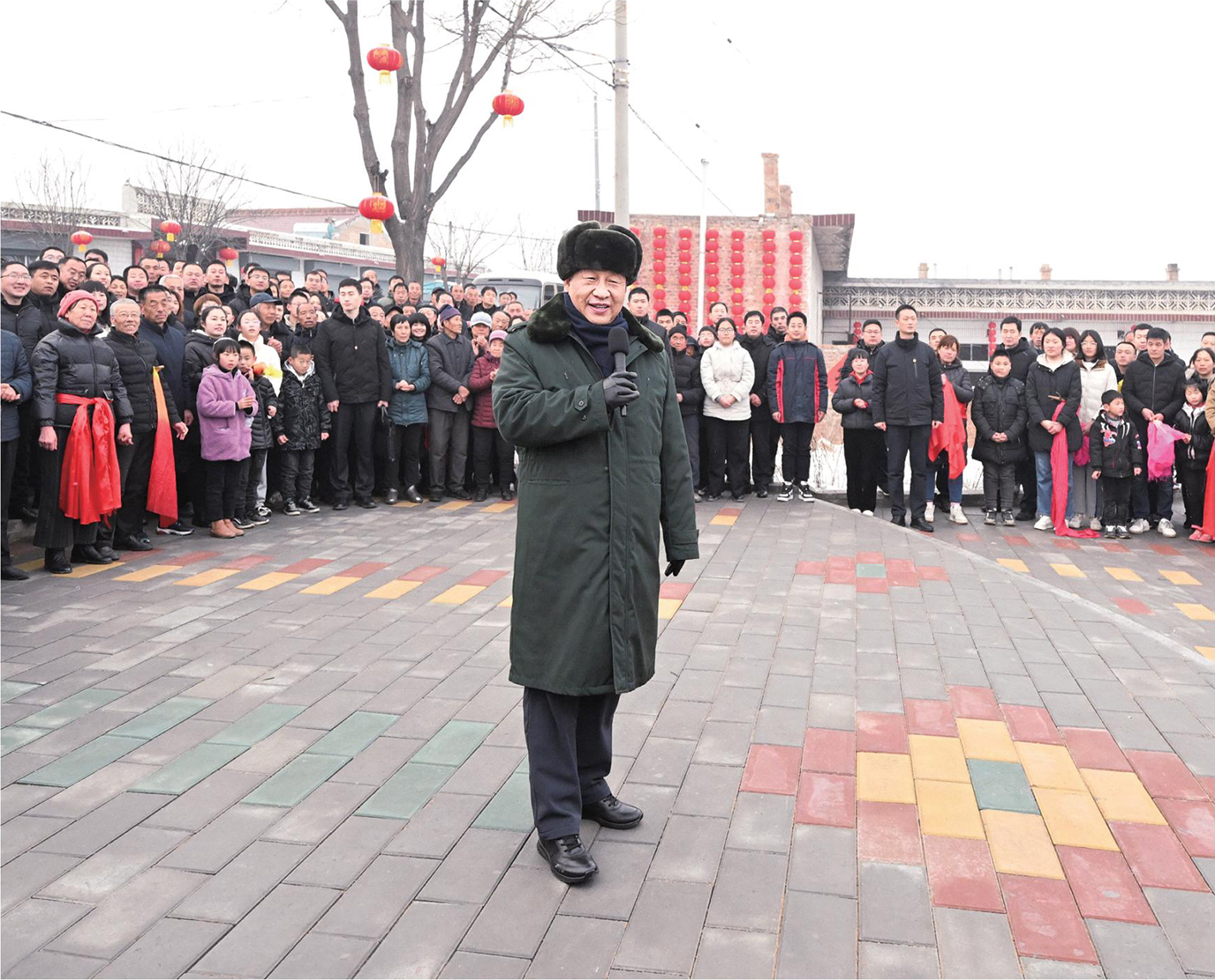 1月26日下午,中共中央总书记、国家主席、中央军委主席习近平在山西临汾市汾西县僧念镇段村文化广场给乡亲们拜年。 新华社记者 李学仁 摄