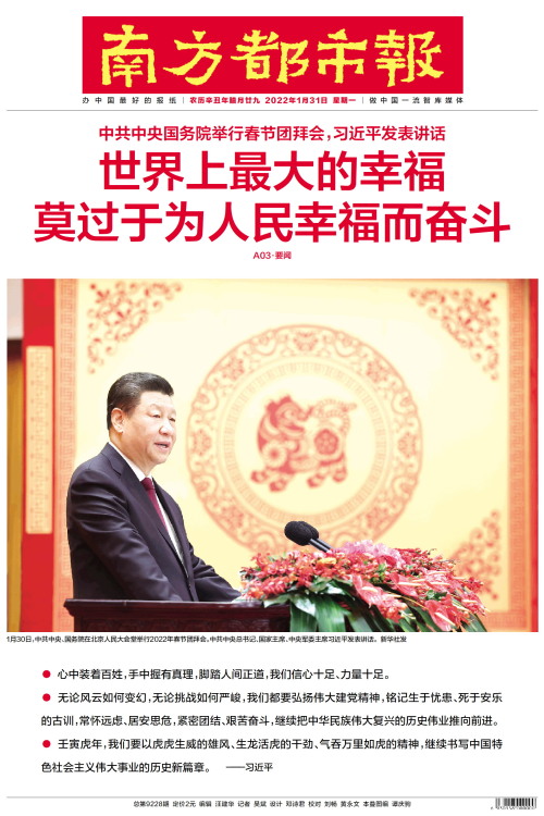 1月30日,中共中央、国务院在北京人民大会堂举行2022年春节团拜会。中共中央总书记、国家主席、中央军委主席习近平发表讲话。 新华社发 ●心中装着百姓,手中握有真理,脚