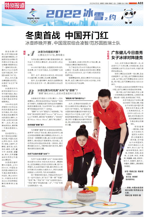 首战告捷!昨晚,北京冬奥会冰壶混双循环赛首轮,中国混双组合凌智/范苏圆与对手瑞士组合佩雷/里奥斯经过了一番焦灼的比拼,最终以7比6力克两位前冬奥亚军,为中国队取得了开门红。 昨日,作为冬奥会赛程