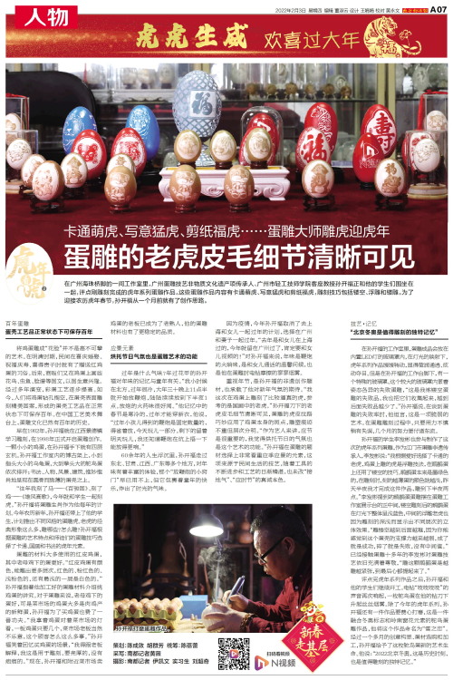 孙开福打磨蛋雕作品。 扫码看视频 在广州海珠桥脚的一间工作室里,广州蛋雕技艺非物质文化遗产项传承人、广州市轻工技师学院客座教授孙开福正和