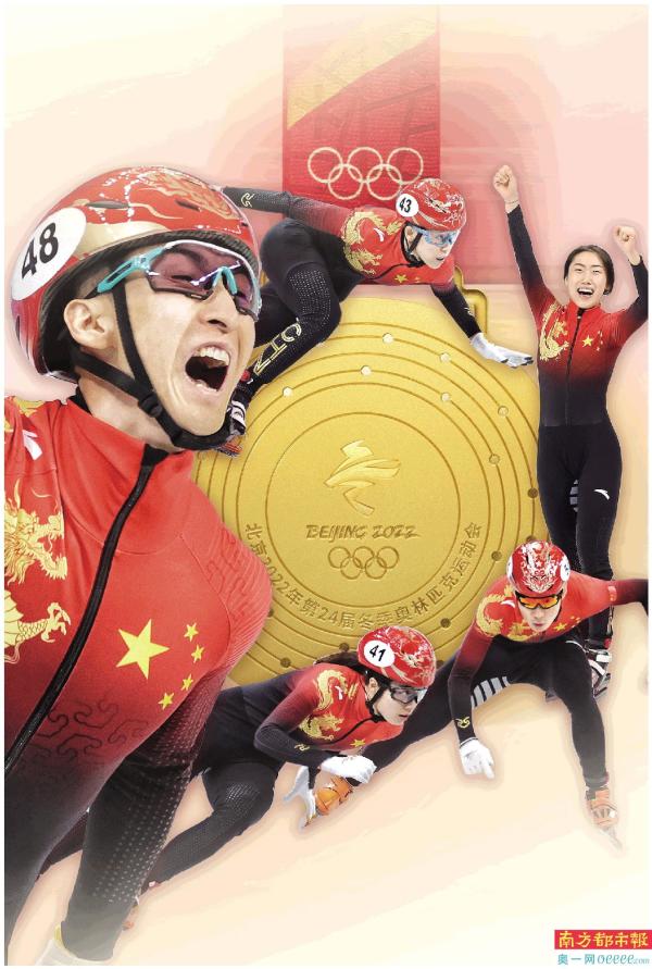 昨日,在短道速滑项目混合团体接力决赛中,由武大靖、任子威、范可新、曲春雨、张雨婷(半决赛)组成的中国队夺得冠军。南都记者 黎湛均 摄