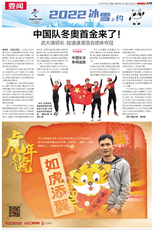 南都讯 记者汪雅云 5日晚,北京冬奥会决出了短道速滑项目的第一枚金牌,在混合团体2000米接力决赛中,由曲春雨、范可新、武大靖、任子威和张雨婷(半决赛)出战的中国队以2分37秒348获得冠军,这也