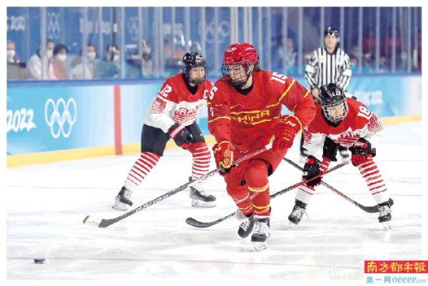 中国女子冰球队与日本女冰对战中。 南都记者 黎湛均 摄