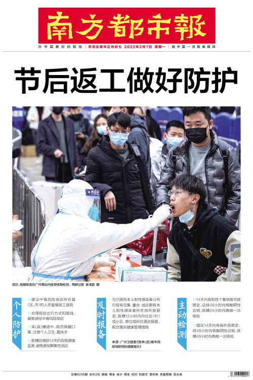 个人防护 ◎建议中高风险地区所在县(区、市)的人员暂缓返工返岗 ◎合理规划出行方式和路线,避免途经中高风险地区 ◎来(返)穗途中,规范佩戴口罩,注意个人卫生,勤洗手 ◎抵穗后做好14天