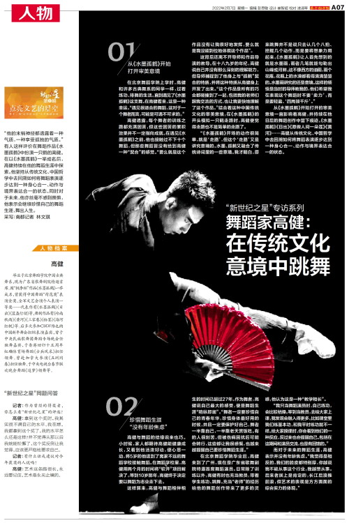 “他的末梢神经都透露着一种气质,一种享受孤独的气质。”有人这样评价在舞蹈作品《水墨孤鹤》中扮演一只鹤的高健。在以《水墨孤鹤》一举成名后,高健持续在他的舞蹈生涯中探索。他坚持从传统文化、中国哲学中去