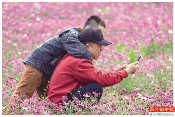 6日,珠海平沙格桑花花海吸引游客前来观赏。南都拍客 周家侨 摄