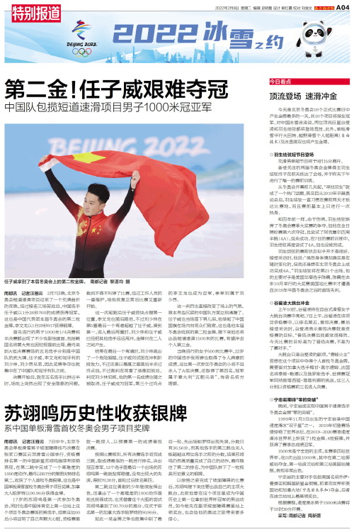 南都讯 记者汪雅云 2月7日晚,北京冬奥会短道速滑项目迎来了一个充满曲折的夜晚,经过接连三场苦战后,中国选手任子威以1分26秒768的成绩获得冠军,这也是中国代表团本届冬奥会的第二枚金牌,李文龙以
