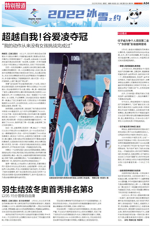 南都讯 记者汪雅云 8日上午,在北京冬奥会自由式滑雪女子大跳台决赛中,中国新星谷爱凌三跳都出色完成,并最终以完美表现拿到了一枚金牌,这是全能少女谷爱凌本届冬奥会收获的第一枚奖牌,也是第一次有中国健