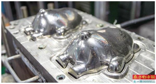 “冰墩墩”外壳模具已被安装至流水线上等待投入生产。 南方日报记者 董天健 摄