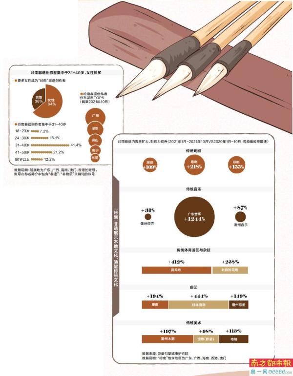 《2021巨量引擎岭南篇非遗数据报告》首次总结了数字化驱动下,岭南地区(含广东省、广西壮族自治区、海南省、香港和澳门)非遗展示与传播的新趋势。