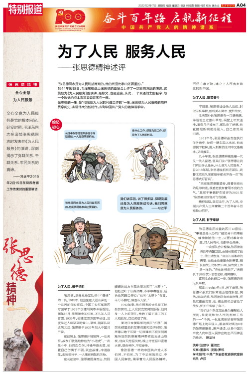张思德精神 全心全意 为人民服务 全心全意为人民服务是党的根本宗旨。延安时期,毛泽东同志在追悼张思德同志时发表的《为人民服务》的演讲,深刻揭示了党群关系、干群关系、军民关系的真谛。 ——习