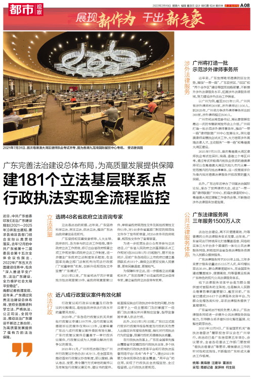 近日,中共广东省委印发《法治广东建设规划(2021—2025年)》并发出通知,要求各地区各部门结合实际认真贯彻落实。去年12月的中共广东省第十二届委员会第十五次全体会议也指出,2022年广东五大方