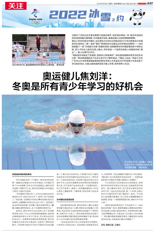 奥运健儿焦刘洋:冬奥是所有青少年学习的好机会