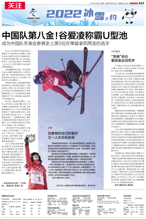 昨日上午结束的冬奥会自由式滑雪女子U型场地技巧决赛中,中国队选手谷爱凌以绝对实力强势夺冠,为中国代表团拿下第八金。这也是谷爱凌个人在本届冬奥会上夺得的第二金,这位18岁的姑娘以2金1银的战绩圆满收