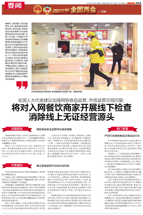 南都讯 记者吴璇 实习生姜梦雪 如今,越来越多的消费者在网上购买食物,网购食品安全如何保障?针对目前网购食品中存在的问题,全国人大代表、广东肇庆大华农生物药品有限公司总裁兼首席科学家陈瑞爱2021