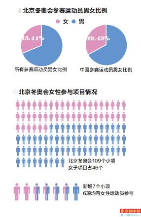根据国际奥委会数据,北京冬奥会是有史以来女性运动员参赛比例最高、参与项目最多的一届,本届冬奥会女性运动员参赛比例达45.4%,全部109个小项中,女子项目达到46个,女性在本届冬奥会上为中国取得优异成绩做出了重要贡献。