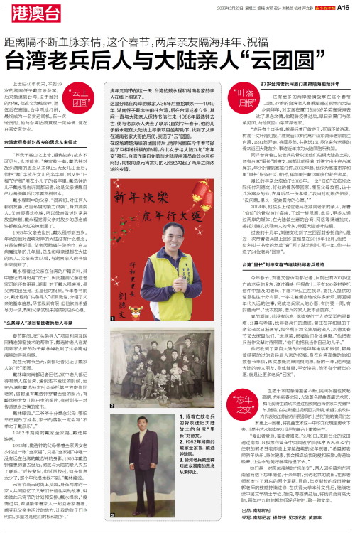 虎年元宵节的这一天,台湾的戴永程和湖南老家的亲人在线上相见了。 这是分隔在两岸的戴家人36年后重拾联系——1949年,湖南伢子戴选钟前往台湾,后在台湾成家立业,其间一直与大陆亲人保持书信往来;1