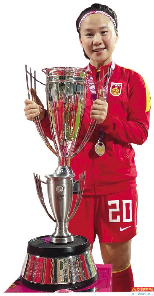 肖裕仪助球队夺冠后跟奖杯合影。