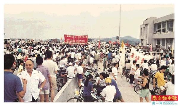 1989年8月1日,广佛高速公路试通车当天上午,“万人单车行”活动火热进行。广州、佛山两地的居民纷纷骑单车逛高速,盛况空前。而后,来自佛山、中山、珠海、江门等地的数百辆车浩浩荡荡来到广佛高速抢先体验高速的便利和快捷。