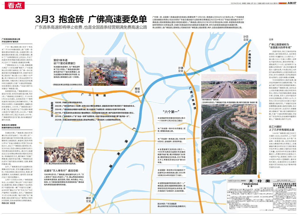 →原雅瑶收费站启用复式收费模式场景。 广州、佛山两地的居民纷纷骑单车逛高速。 ↑刚开通时的广佛高速。 ↓2018年10月6
