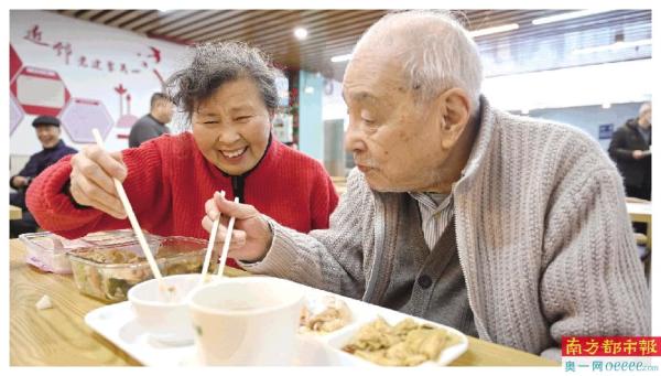 2月18日,福州市锦江社区老人在长者食堂吃午餐。 新华社供图