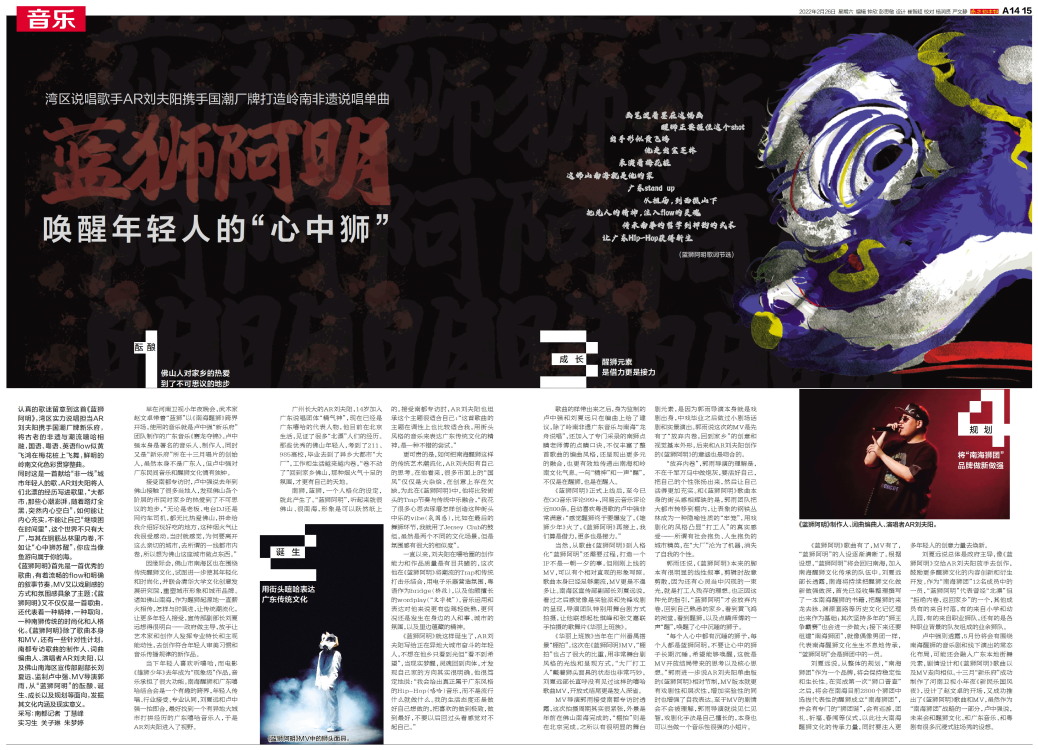 认真的歌迷留意到这首《蓝狮阿明》,湾区实力说唱担当AR刘夫阳携手国潮厂牌新乐府,将古老的非遗与潮流嘻哈相融,国语、粤语、英语flow似黄飞鸿在梅花桩上飞舞,鲜明的岭南文化色彩贯穿整曲。同时这是一首