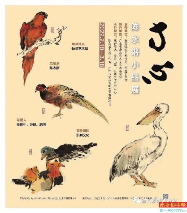 推荐理由:小品是中国传统书画作品的一种重要形式。以小见大,以巧取胜,充满诗意之美与文化想象力。小品具有言简意赅、凝练致远的风格,其尺幅较小,画中没有对宏大主题的叙述,更多的是画家心境、情感的流露。在此方寸天地中,画家的创作更为随意、率真,运笔挥毫间,气韵生动,气象万千,意趣天成。本次展览将在陈永锵先生的笔墨韵致中,让我们感受到小品的清雅魅力,我们也可在品读的过程中获得审美的愉悦和内心的共鸣。