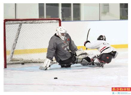 中国残奥冰球队队员在训练,这支队伍将在北京迎来冬残奥会首秀。 新华社发