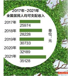居民收入与经济增长基本同步。2021年全国居民人均可支配收入35128元,比上年实际增长8.1%,快于人均GDP增速,与GDP增速同步。脱贫县居民收入快速增长。2021年,脱贫县农村居民人均可支配收入14051元,比上年名义增长11.6%,实际增长10.8%,快于全国农村居民人均可支配收入增速。