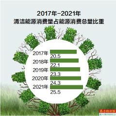 节能减排扎实推进。2021年,全国万元国内生产总值能耗比上年下降2.7%,重点耗能工业企业单位电石综合能耗下降5.3%,万元国内生产总值二氧化碳排放下降3.8%。清洁能源消费占比上升。2021年,天然气、水电、核电、风电、太阳能发电等清洁能源消费量占能源消费总量的25.5%,比上年上升1.2个百分点。污染物排放下降。2021年,氮氧化物、挥发性有机物、化学需氧量、氨氮等主要污染物总量减排指标顺利完成年度目标。