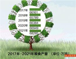 安全发展继续夯实。粮食生产再获丰收。2021年粮食总产量13657亿斤,比上年增产267亿斤,增长2.0%,再创历史新高。能源保供力度不断加大,生活生产用能总体得到保障。初步核算,2021年,一次能源生产总量达43.3亿吨标准煤,比上年增长6.2%;发电量85342.5亿千瓦时,增长9.7%。