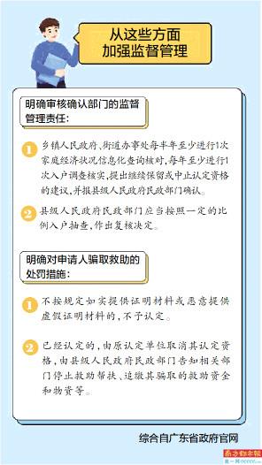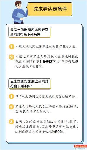 广东省政府官网发布《广东省最低生活保障边缘家庭和支出型困难家庭救助办法》(下称《救助办法》)。3月1日起施行。该办法明确规定,共同生活的家庭成员人均收入、财产和生活状况符合当地相关标准的家庭,经申请审核确认即可进行分别认定。认定后,由民政部门为其提供基本生活救助,相关职能部门在医疗、教育、住房以及就业等方面提供专项救助。