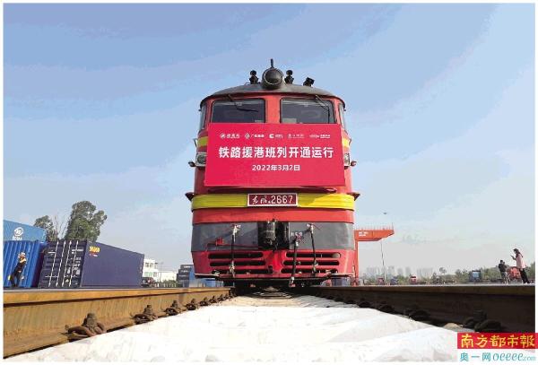 3月2日上午11时08分,首趟“中央援港 同心抗疫”铁路援港班列,满载防疫物资,从深圳平湖南国家物流枢纽开出,驶向香港罗湖编组站,标志着中央铁路援港班列正式开通发车。首趟班列装载的防疫物资包括新冠病毒检测试剂盒110.656万人份、防护服2万件以及其他医疗用品。前期将以每天1列的发运频率稳定运行,每列装载18个集装箱,后续可根据实际需求增加班次和货柜数量。 南都记者 张艳丽 赵炎雄 南方日报记者 鲁力 摄影报道