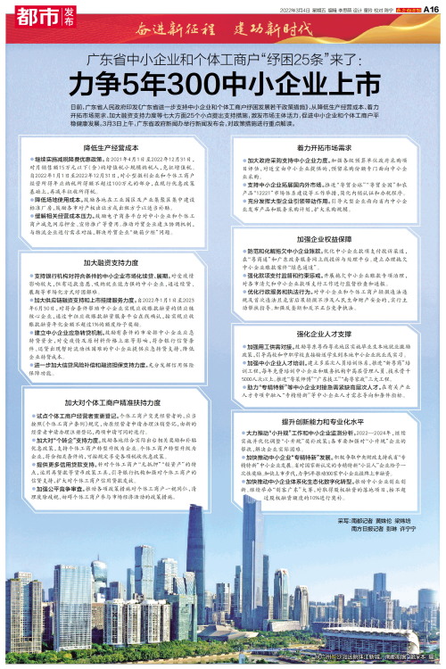 从广州二沙岛远眺珠江新城。 南都拍客 谢深本 摄 日前,广东省人民政府印发《广东省进一步支持中小企业和个体工商户纾困发展若干政策措施》,从降低生产经营成本、着力开拓市