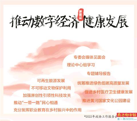 梳理发现,今年的报告中至少有10余个新提法出现。如“推动数字经济健康发展”,报告提到“就推动数字经济健康发展,深入实施新时代人才强国战略进行专题协商”。还有“统筹推进绿色低碳高质量发展”“促进乡村医疗卫生健康发展”等报告中的新提法,展现2022年政协以高质量建言服务高质量发展的工作方向。