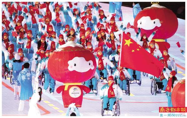 中国代表团在开幕式上入场。 新华社发
