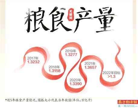 根据2022年政府工作报告,今年粮食产量目标保持在1.3万亿斤以上。报告提出,要确保粮食能源安全。保障粮食等重要农产品供应,保障民生和企业正常生产经营用电。加强粮食等重要农产品稳产保供。保障国家粮食安全各地区都有责任,粮食调入地区更要稳定粮食生产。各方面要共同努力,装满“米袋子”、充实“菜篮子”,把14亿多中国人的饭碗牢牢端在自己手中。