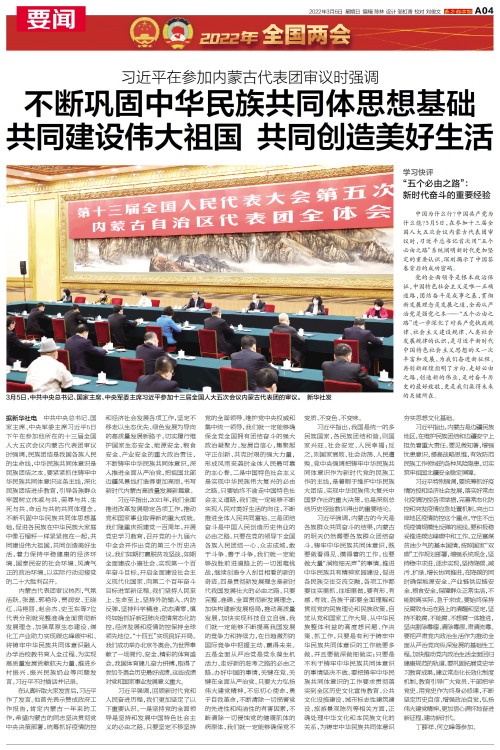 据新华社电 中共中央总书记、国家主席、中央军委主席习近平5日下午在参加他所在的十三届全国人大五次会议内蒙古代表团审议时强调,民族团结是我国各族人民的生命线,中华民族共同体意识是民族团结之本。要紧紧