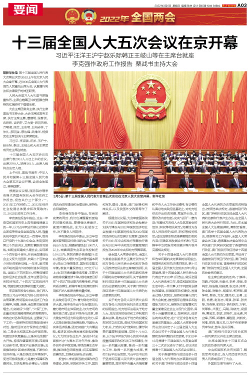 十三届全国人大五次会议在京开幕