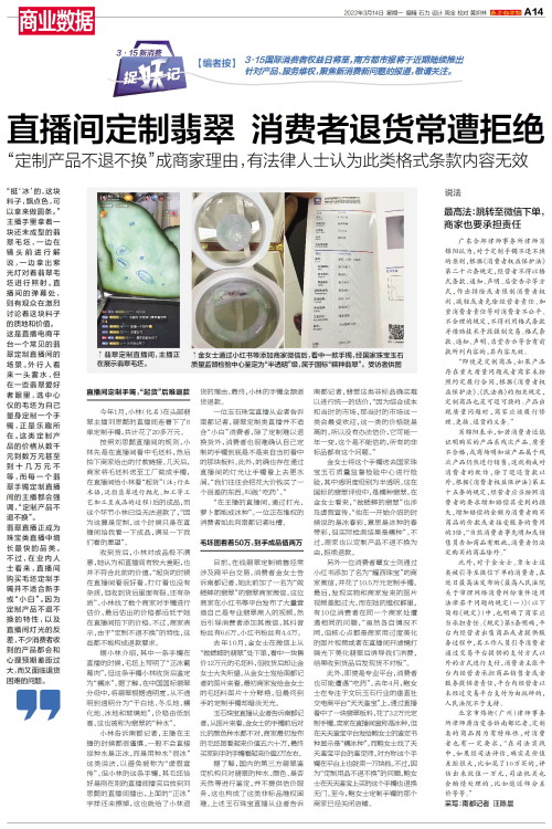 “在主播的直播间,通过打光,萝卜都能成冰种”。一位正在维权的消费者如此向南都记者吐槽。
