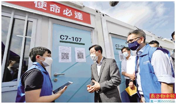 3月13日,香港特区政府政务司司长李家超视察接收粉岭社区隔离设施。 来源:香港特区政府新闻网
