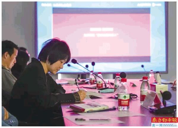 3月11日,“最美金融消保人”风采展示活动评选会现场,专家评委正在为作品打分。