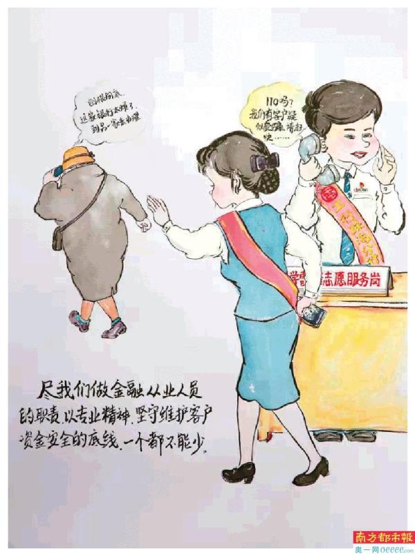 广东工行丰富金融知识宣教形式,图为珠海工行员工何辉手绘的防范电信诈骗漫画故事。