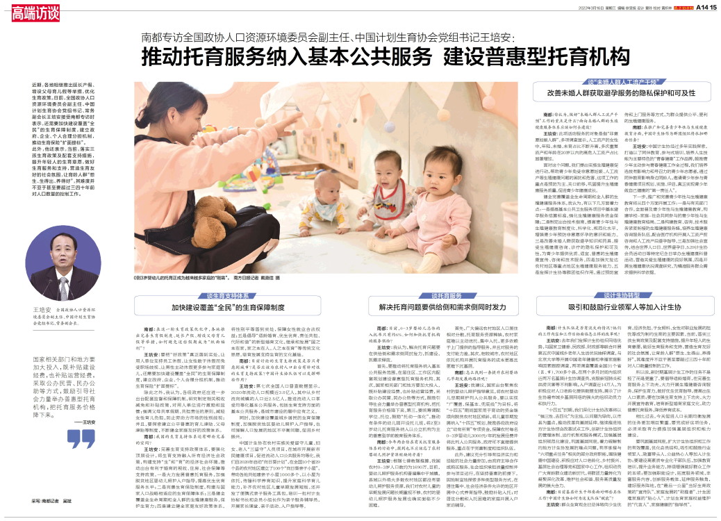近期,各地相继推出延长产假、增设父母育儿假等举措,优化生育政策。日前,全国政协人口资源环境委员会副主任、中国计划生育协会党组书记、常务副会长王培安接受南都专访时表示,还需要加快建设覆盖“全民”的生