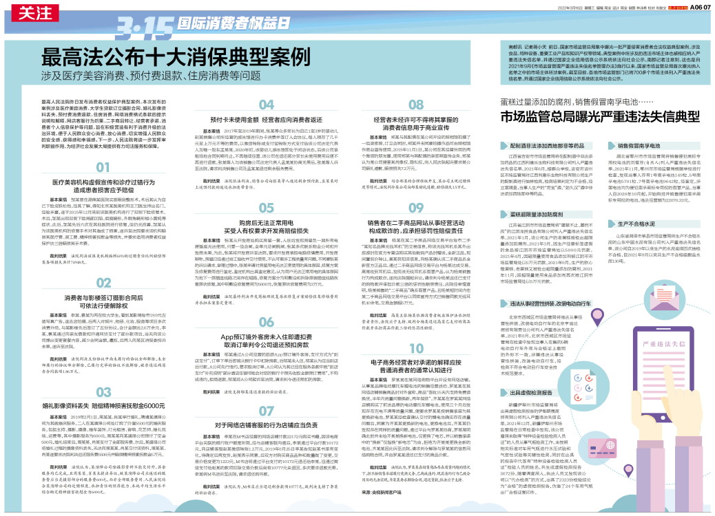 最高法公布十大消保典型案例