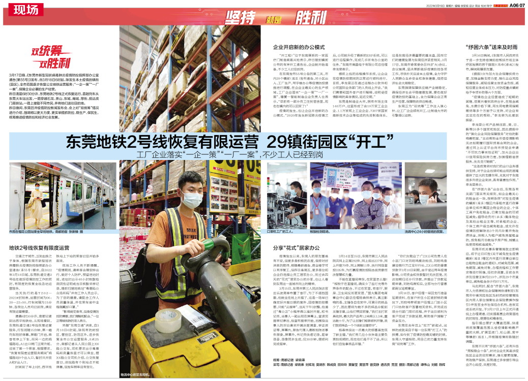 3月17日晚,《东莞市新型冠状病毒肺炎疫情防控指挥部办公室通告(第55号)》发布,自3月18日6时起,除发生本土疫情的镇街(园区),全市范围逐步恢复公交地铁运营服务;“一企一策”“一厂一案”,保障企业必要的生产经营。