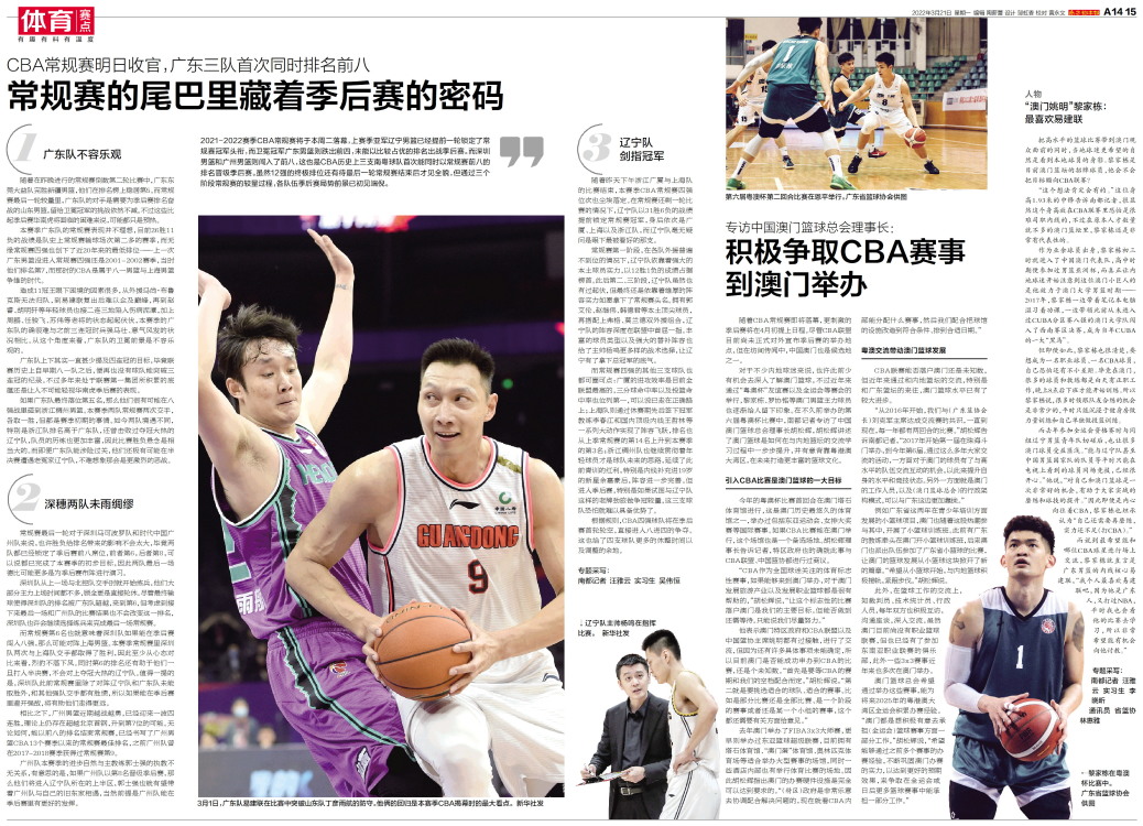 对于不少内地球迷来说,也许此前少有机会去深入了解澳门篮球,不过近年来通过“粤澳杯”友谊赛以及全运会等赛会的举行,黎家栋、罗协铭等澳门男篮主力球员也逐渐给人留下印象。在不久前举办的第六届粤澳杯比赛中,南都记者专访了中国澳门篮球总会理事长胡松辉,胡松辉讲述了澳门篮球是如何在与内地篮坛的交流学习过程中一步步提升,并有意背靠粤港澳大湾区,在未来打造更丰富的篮球文化。